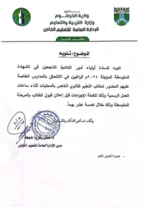 تنويه عاجل من التعليم الخاص بشأن الناجحين في الشهادة المتوسطة
