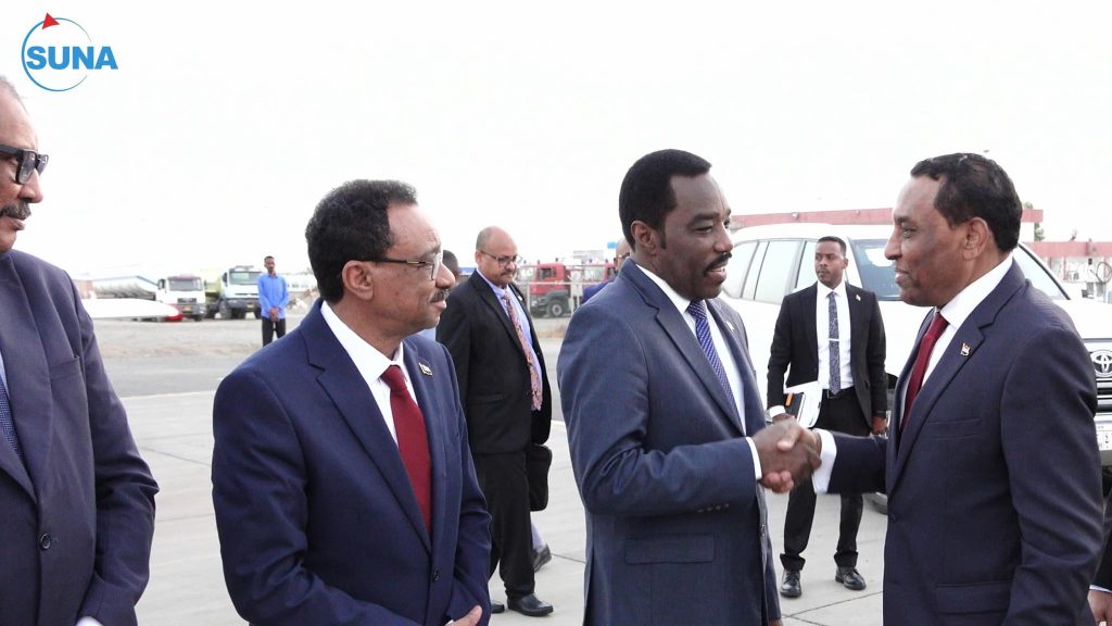 وكان في وداعه بمطار بورتسودان، وزراء الزراعة والري، التعليم العالي والبحث العلمي، الموارد البشرية والرعاية الاجتماعية.