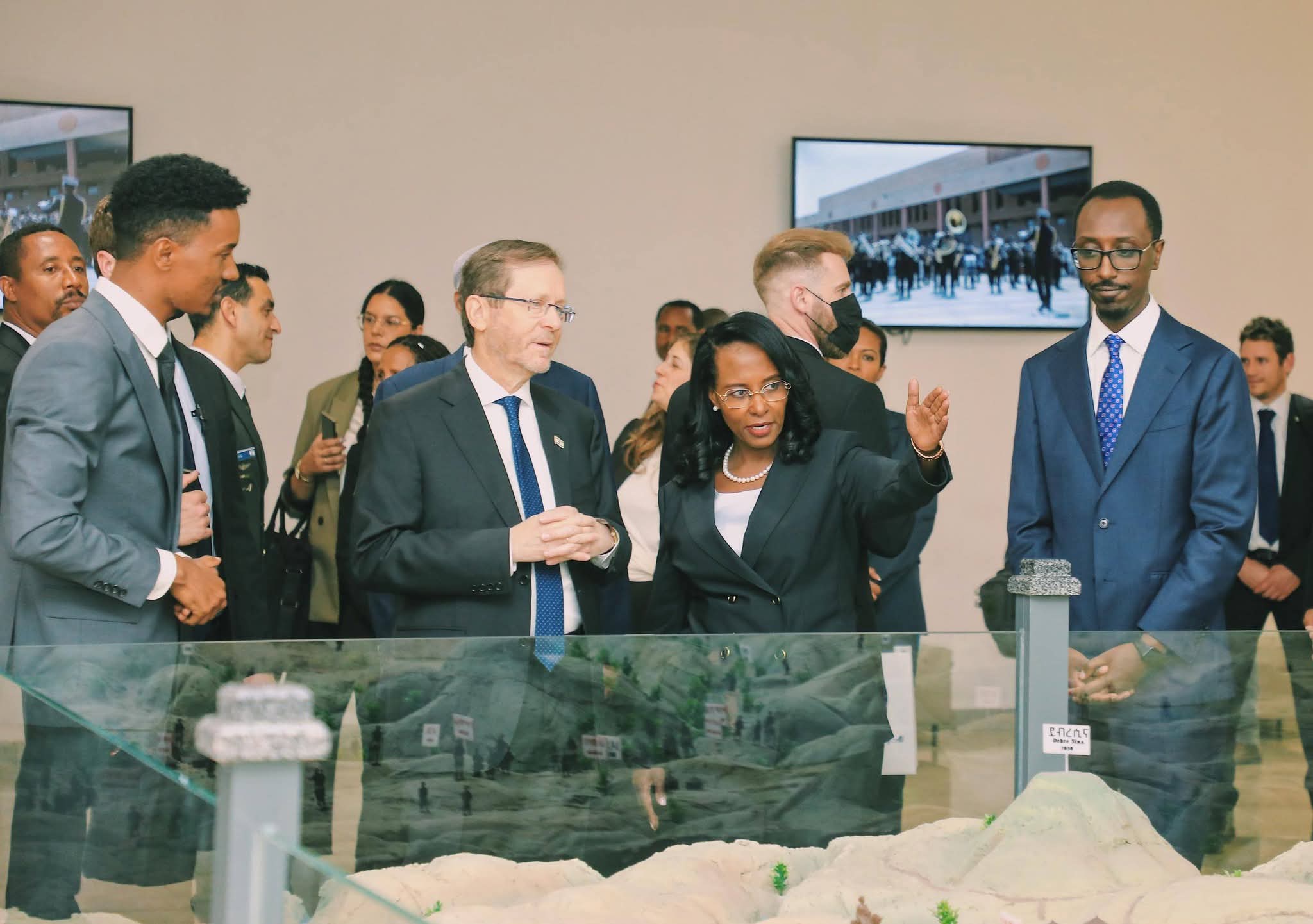 زار الرئيس الإسرائيلي إسحاق هرتسوغ ، متحف ذكرى انتصار عدوا في العاصمة الإثيوبية أديس أبابا ، حيث رافقته عمدة المدينة أدانتش أبيبي في جولة تعريفية داخل أروقة المتحف الذي يُعد رمزًا للفخر والنضال الإفريقي.